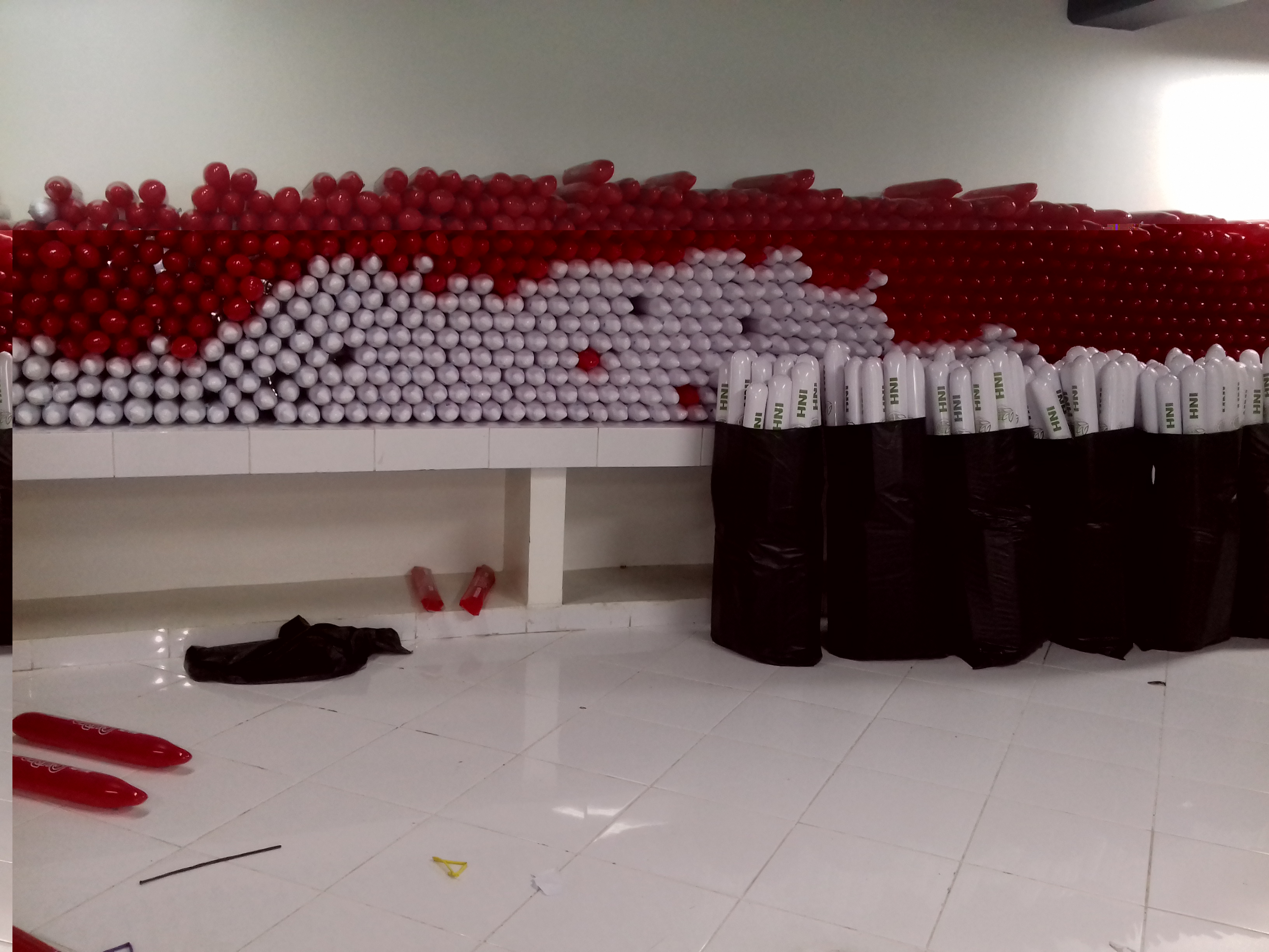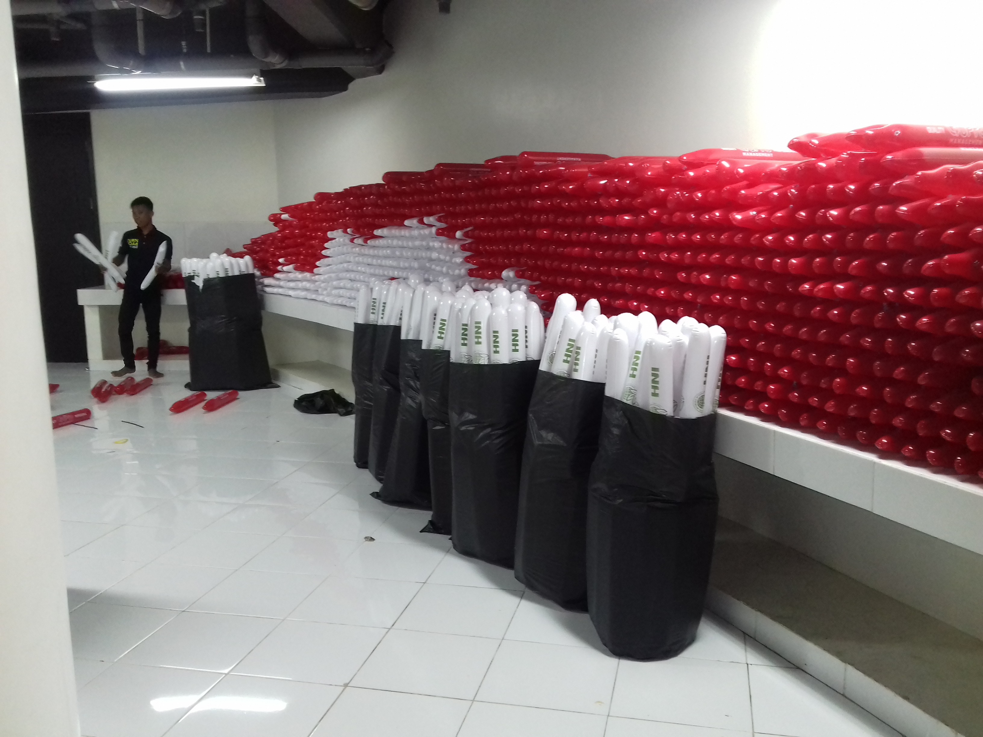 belum lama ini kami tim surya balon dengan bangga ikut serta berpartisipasi di percaya untuk memproduksi balon tepuk dengan logo HNI dan QUPRO masing – masing berjumlah 1000pcs dengan warna balon putih dan tinta logo HNI warna hijau dan balon merah dengan tinta putih berlogo QUPRO. event HNI tersebut di selenggarakan di gedung SICC sentul bogor dan alhamdulillah berjalan dengan lancar sampai acara selesai.