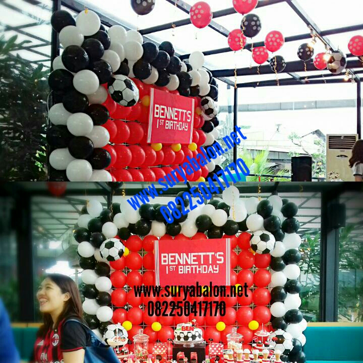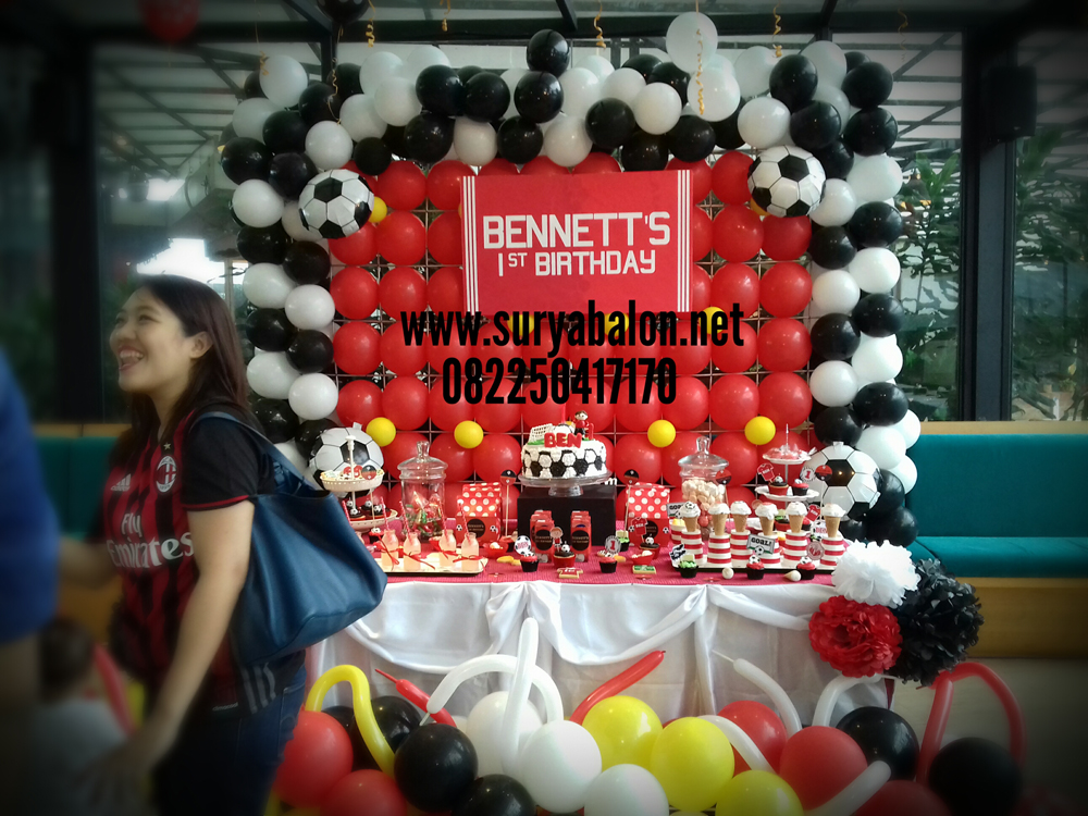 belum lama ini kami sangat bangga untuk ikut meramaikan sebuah pesta ulang tahun di salah satu restoran ternama the breze – njun njan resto yang berada di daerah serpong , dengan dekorasi balon yang bertemakan bola manchester united, alhasil customer puas dengan hasil karya kami. karena sangat tepat seperti yang di inginkan, backdrop balon bertema bola dengan ukuran 2,5 x 2,5 M dan warna balon untuk dekorasi hanya terdiri 4 warna yaitu merah, hitam, putih dan kuning di tambah sebagai pemanis dekorasi dengan balon polkadot yang berperan sebagai penghias atap-atap ruangan pesta, jadilah suasana menjadi lebih meriah.